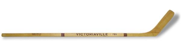 Unused Victoriaville Pro game issued Bobby Orr stick from the 1969-70 season. This one is right off the rack in the bowels of Boston Garden and displays a vintage ballpoint Bobby Orr signature up near the handle with the notaion "4/1970". In great shape with dark factory markings and all accent striping in its place.