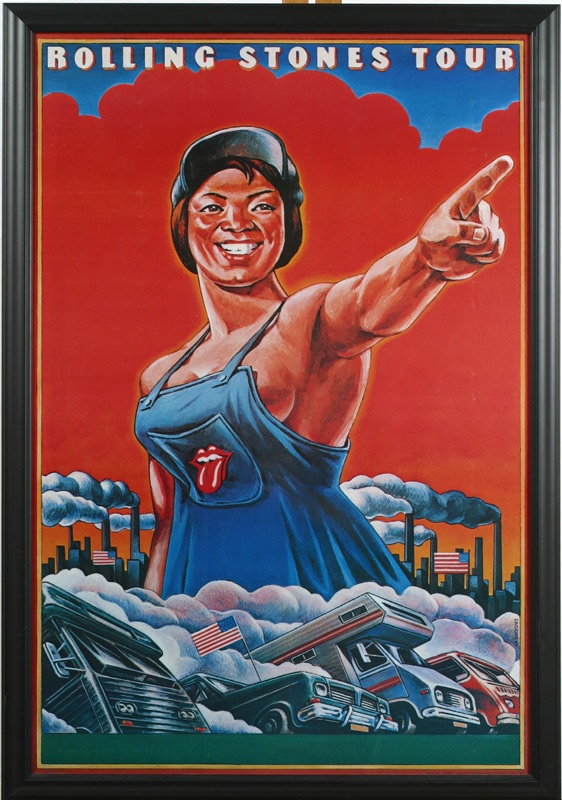 Incredibly rare Rolling Stones concert poster (21x32") features a buxom woman in blue overalls, once sold during the Stones 1978 "Some Girls" tour. With a Maoist/Communist tone and brilliant graphics, this is one of the all time toughest Stones concert posters to find and offered here in a handsome black frame. NRMT.