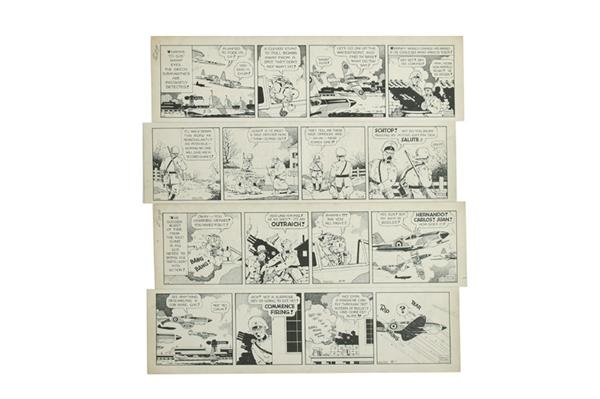 4 pieces of original daily artwork, rendered in the hand of Frank Miller. All four are signed by the artist, and are among the last ones that he created before he left the strip in 1942 to join the U.S. Coast Guard. Each piece of art is EX+, measuring 6x21" and each with copyright 1942 on the front.