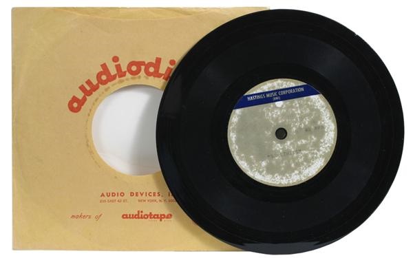 One of a kind acetate is an unreleased version of the number one hit "Something" written by George Harrison and released by the Beatles in 1969. 45 rpm record has "Hastings Music Corporation (EMI)" on the label along with "Something". This version is different from the final version that appeared on "Abbey Road". There are some minor surface imperfections on the record, otherwise EX-MT.