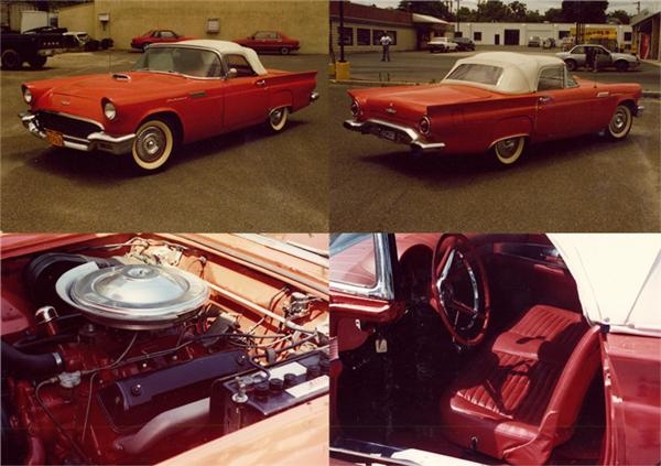 The 1957 Ford Thunderbird is considered by many as the sexiest of the American built two seat sports cars. A flasback to the "Rat Pack" days, this gorgeous cruiser is powered by its original T-Bird 312 c.i. engine equipped with a 4 barrel carb and automatic transmission.. The car is all original with total mechanical restoration, finished in its original red enamel. A total dropdead headturner, its interior, with twin bucket seats, is in excellent condition. This is a turn key vintage luxury sports car from the golden era of automobile design. Get in, drop the top and watch them look on in awe. This automobile is sold as is, with no warranties from Lelands expressed, written or implied.