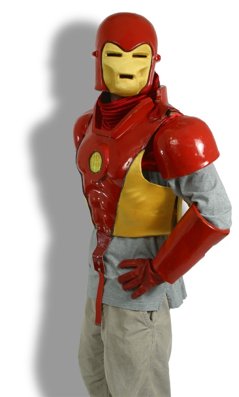 The world's greatest human fighting machine, Iron Man is a high-tech warrior. As the comic book says, "He lives, he walks, he conquers!" We think it's the costume. It consists of a hard plastic helmet-style mask featuring a bright red and canary yellow paint scheme, a chest piece of a space-age design rendered in hard plastic in the same comic book color, and a single gauntlet and glove. The costume was used for promotional purposes in the 1960's by Marvel Entertainment.