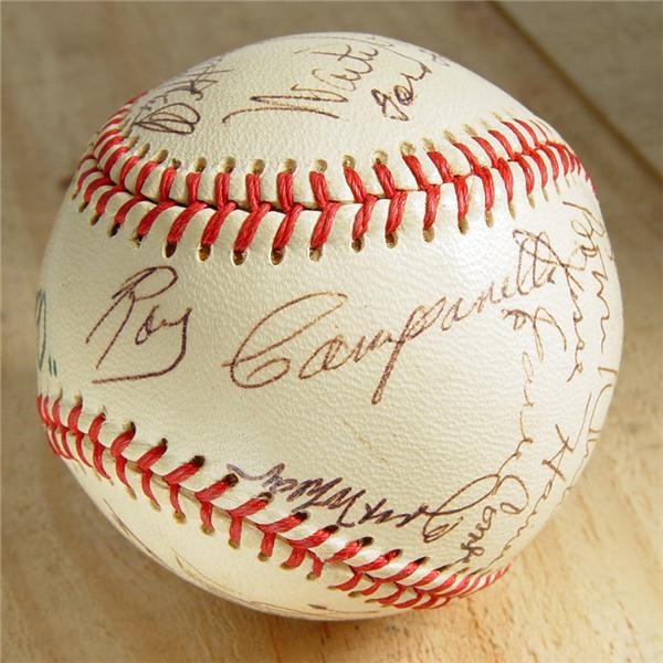 Ball is also signed by Mrs. Roy Campanella and Legendary Major League Baseball Commissioner Bowie Kuhn. The signatures grade
