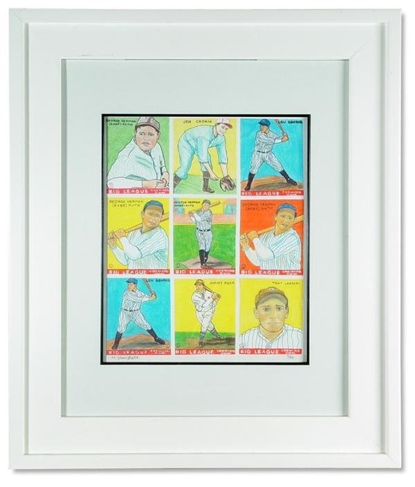 A beautiful piece of art work, featuring Baseball greats: BabeRuth; Lou Gehrig; Joe Cronin; Tony Lazzeri and Jimmy Foxx. This limited edition framed print measures 11" x 13.5" and is framed and matted in white.It is signed and numbered # 1 of 55 by the artist Vinnie Blade. Piece comes from the Charlie Sheen collection.