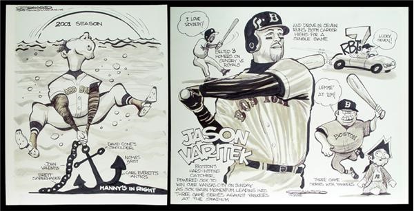 Original drawings from noted illustrator and cartoonist Frank Galasso. Galasso's commentary on the Sox's 2001 season. Both drawings are in MT condition and are signed by the artist.