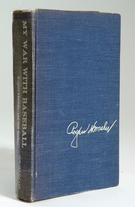 This hardcover book chronicles the career and views on the Game fromof one of Baseball's All-Time Greats and toughest competitors Rogers Hornsby. Book was cowritten by Hornsby and includes a forward by the immortal Casey Stengel. The book is in VG condition with the color of the binding faded from age. The book was inscribed " To Harold Ogden from Rogers Hornsby-Best Wishes 1962" signed in blue ball point ink. Signature rates "9" out of a possible 10.