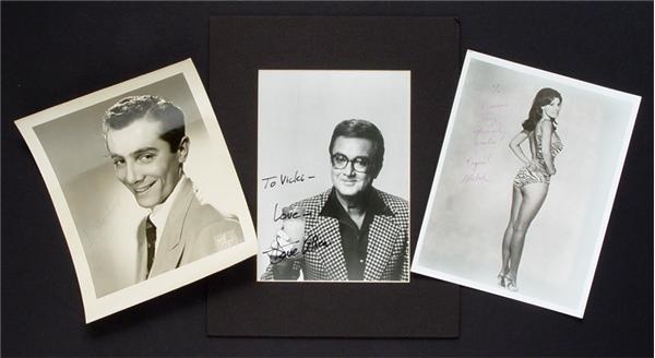This lot contains three(3) autographed black & white photos of entertainment stars: Raquel Welch; Steve Allen and Al Martino. The Welch photo measures 8" x 10" and is inscribed "To Dennis Very Special wishes! Raquel Welch" in blue ballpoint ink. The Steve Allen photo measures 8" x 10" and is matted (viewable area measures 6.5" x 9.25") and is inscribed " To Vicki-Love-Steve Allen" in black sharpie. The Al Martino photo measures 8" x 10" and is inscribed "Al Martino" in blue nballpoint ink. The photo is dated "May 28-1952" on the back.