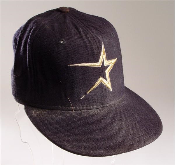Craig Biggio one of Houston's "Killer B's" is one of the Game's most versatile and unselfish players. An All-Star at catcher and 2B, he moved to the Outfield in 2004 in order to help the team. He has posted Hall of Fame numbers with his bat and speedy feet. This Game Used size 7 New ERA hat is from the 1995/1996 season. It shows tremendous Game Use. The hat is signed "Craig Biggio" on the bills underside in black sharpie and also is marked "7" in black sharpie.