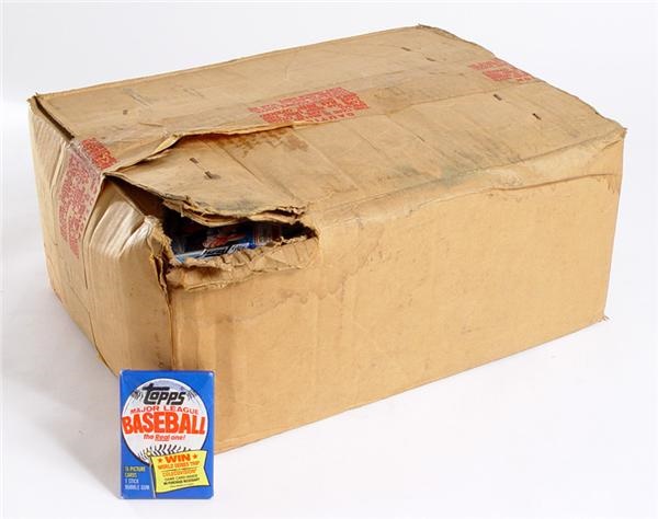 This lot contains a case of unopened 1983 Topps Baseball Miswrapped wax packs. The case was opened by us in order to estimate the number of wax packs enclosed and is unsearched. There are approximately 300 packs in the case. An incredible opportunity to pull Rookie cards of Tony Gwynn and 2005 Hall of Fame Inductees Wade Boggs and Ryne Sandberg.