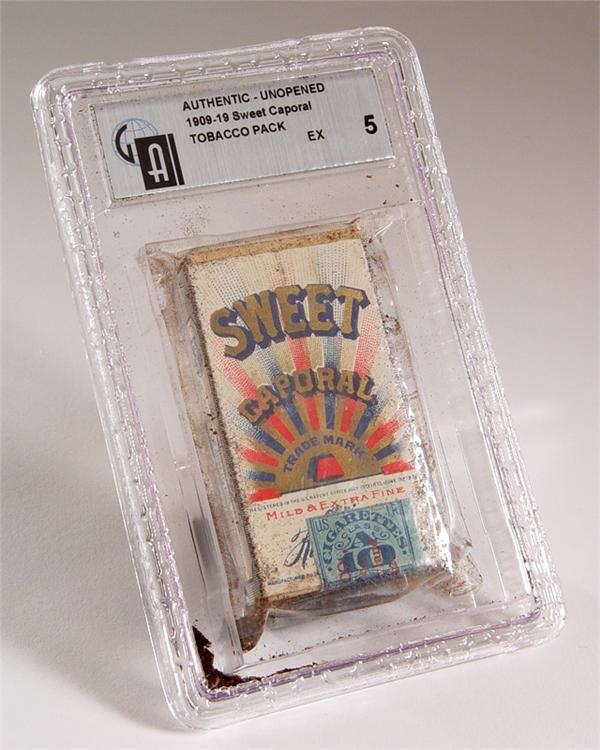 Rare unopened 1909-19 Sweet Caporal Tobacco pack. The pack might contain 1 card from the T206 set. Pack is graded GAI EX- 5.