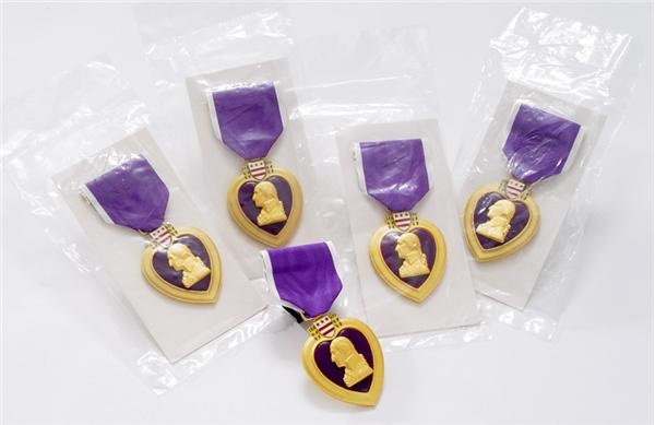 Charlie Sheen is one of today's finest actors having appeared in over 50 feature films including: Wall Street, Platoon, Navy Seals and Red Dawn. This is a lot of five (5) purple hart movie props.Each purple heart has a purple ribbon attached to a 2" gold heart with a purple background and a gold colored bust of George Washington.It is unclear from what specific movie they came from. From the Charlie Sheen collection.