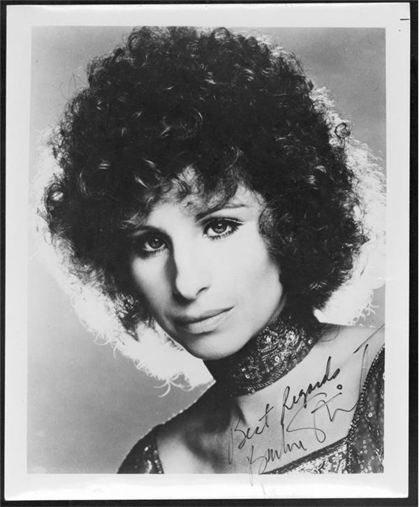 Barbara Streisand is one the the finest entertainers in the world.Equally talented as a vocalist, actress & director, "Babs" is has millions of adoring fans around the globe and is currently starring on the big screen in 'Meet The Fockers". This vintage 8"x10" promotional photo is signed "Best Regards Barbara Streisand" in black Sharpie.