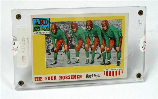 Topps first foray into the football card market resulted in this 1955 set. This is card # 68 honoring the legendary Four Horsemen backfield at Notre Dame. Card is in EX condition.