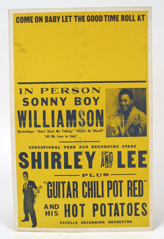 Early 1950's R&B Concert Poster for show featuring Sonny Boy Williams. Measures 13.5" x 22". Color still vibrant. Overall EX condition.