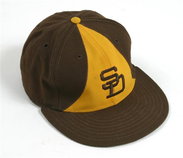 New Era, [size] 7 1/8, is signed and inscribed, "Mickey Lolich-1979-San Diego Padres" in black felt tip by the former All-Star and written twice with his number "29" in black sharpie. Highly sought after style from the former All-Star's final season shows great use. Tear along the leather head band.