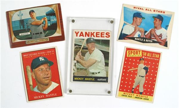 1) 1964 Topps #50-edge wear, small spot stain on reverse (EX). 2) 1960 Topps #160-minor corner wear (EX-MT). 3) 1961 Topps #475-staining on front (EX). 4) 1958 Topps #487-even corner wear, corner crease (VG-EX). 5) 1955 Bowman #202-rounded corners, edge wear (VG).