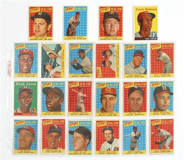 Includes #321 Williams/Klu, #476 Musial, #479 Fox, #480 Mathews, #482 Banks, #483 Aparicio, #484 Robinson, #486 Mays, #488 Aaron, #494 Spahn. Overall condition is EX-EX+.
