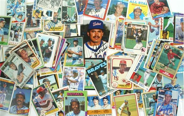 Three decades of superstars fill this collection of ninety-four signed baseball cards including Hank Aaron (3), Willy McCovey, Willie Mays, Bob Gibson, Mike Schmidt (2), Rickey Henderson (4) and many, many, more. All signatures are strong and legible on cards that grade an overall EX.