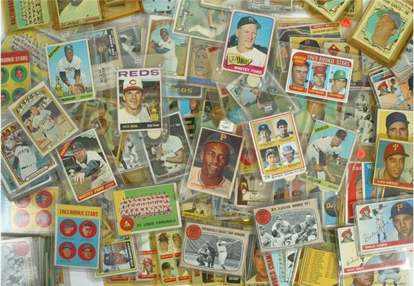 Three decades of suoerstars all in a single lot! How lucky can one guy be? All-star cards, rookie cards, team cards, leader cards, tattos, decals, In-Action Cards, there all here and featuring names such as Carew, Aaron, B. Robinson, Staub, Clemente, W. Ford, Killebrew, Yaz, F. Howard, Gibson, Aparicio, Maz, Palmer, Molitor, Rose, Morgan, and Fingers. Overall condition of collection is EX. Excellent breakdown value!