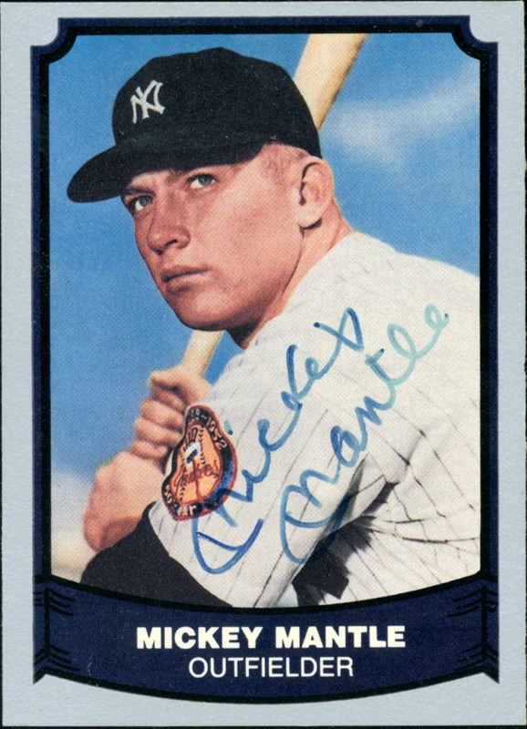 Mickey Mantle autographed trading card Nice blue felt tip autograph with perfect form and fluidity grades an “8” out of possible “10” on a 1988 Pacific Trading card that is EX-MT.