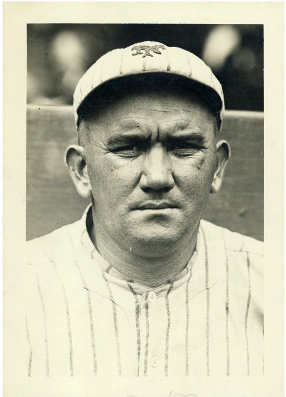 Handsome portrait of Shufflin’Phil taken by famed baseball photographer Paul Thompson. Excellent contrast and clarity, minor pencil notations on the reverse along with vintage “Paul Thompson” press print stamping, NRMT.