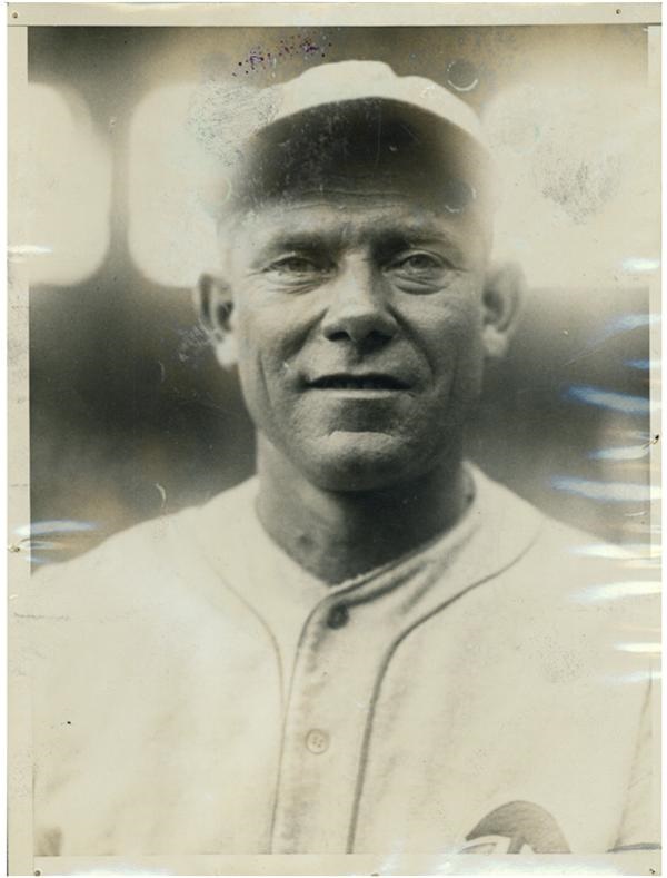 Excellent portrait photograph dated September 17, 1929 of Philadelphia’s ageless wonder. Editorial notations and "International News" press stamping on back. Some wrinkling around edges and tack holes at all corners, otherwise EX. Measures 6" x 8".