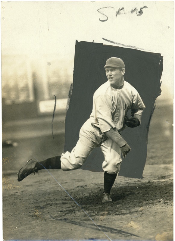 One of the earliest known photos of “Big Jack” taken around the of his sophomore season with the Highlanders. Editorial markings front, notations and Thompson’s proprietary stamp on the reverse, pinholes at corners and 4" diagonal crease, otherwise EX.