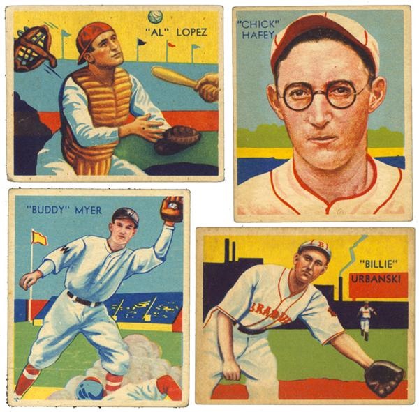 A nice collection of (11) Diamond Stars cards. Included are 1934 (3) cards #'s 4, 13, 18 Hafey VG-EX. 1935 # 28 Lopez VG, 38, 41, 46, 65, 67, 82. The overall condition of the lot is 50% VG-EX and 50% VG.