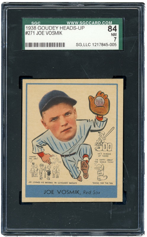 Graded 84 (NM-7) by SGC, Vosmik's "Heads-Up" card displays brilliant color on the front, a spotless backside, four sharp corners, and straight edges all around. Only due to the 60/40 right to left off centering does the card not receive a full mint grade.