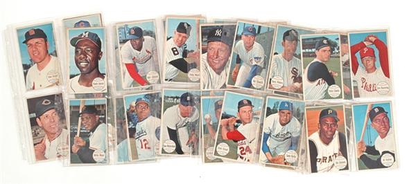 Always a popular set with collectors, this issue features large and clear images of some of the best players of the mid 1960's. Included are Mantle EX-MT+, Mays EX-MT, Clemente EX-MT. The remainder of the cards grade out 80% EX-MT or better and 20% EX.