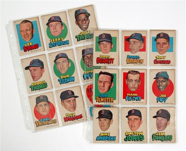 This is one insert set you do not see all too frequently. With the Red Sox in the news now more than ever people are sure to start paying attention to this small, rare and valuable issue. These stickers average NRMT with the highlights being the two Yastrzemski cards.
