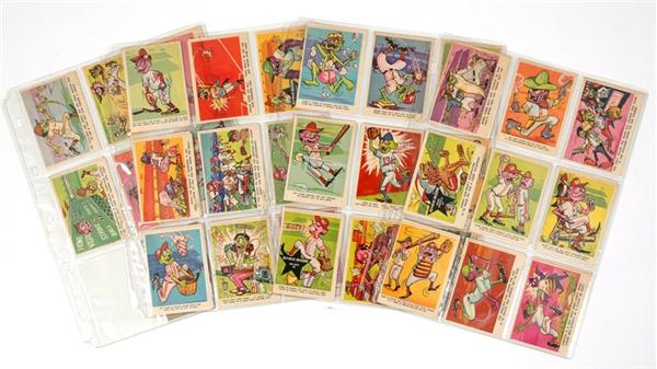 Scarcely seen complete set of sixty six baseball inspired comic cards from Fleer. Overall condition is EX.