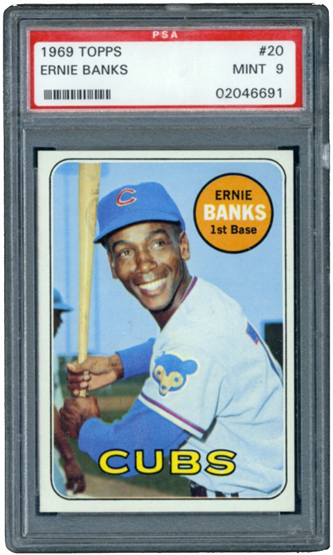 Its vibrant color, straight edges, and overall fresh appearance have earned Bank's 19'69 Topps specimen a grade of Mint 9 from PSA. The perfect addition to any high grade set.