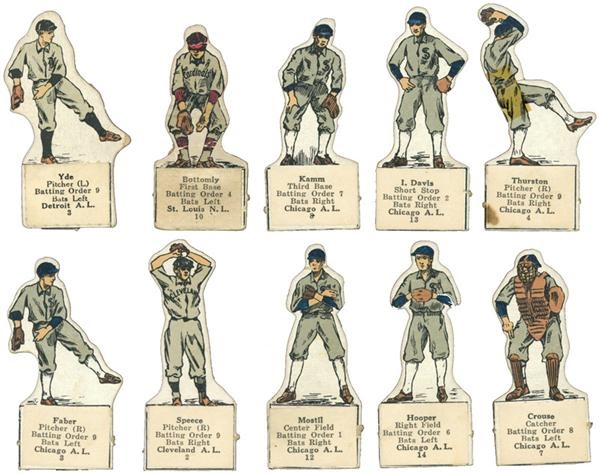 Grouping of "Our National Game" pieces (2.5") comprised mostly of Chicago players such as Hooper, Mostil, Crouse, Faber, I. Davis, Thurston and Kamm. Others include Speece (Cleveland,) Yde (Detroit,) and Bottomly (St. Louis,) Overall VG-EX.