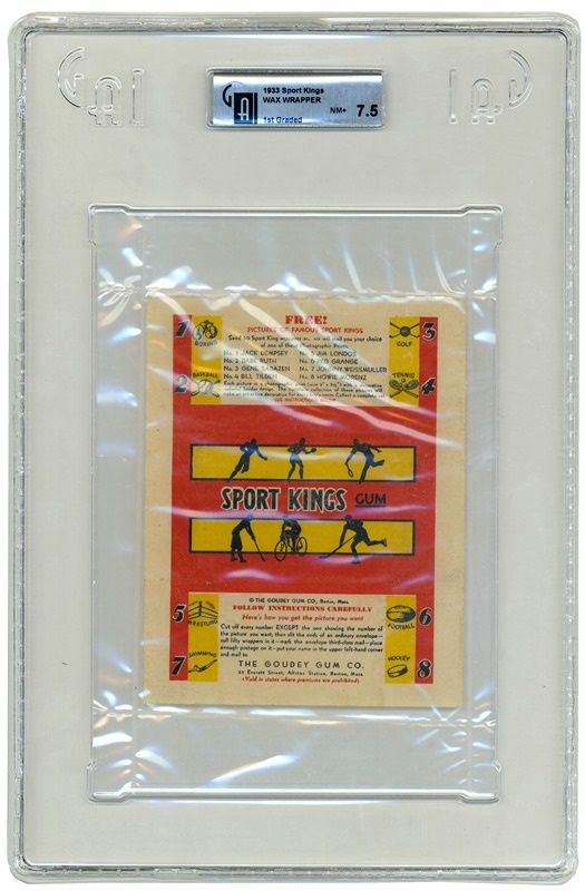 Now that GAI has started grading vintage wrappers be one of the first to jump aboard and add these little pieces of history to your collection. This wrapper is from what is easily the most desirable multi sport set of trading cards ever produced. A must have item for owners of a Sport Kings set or collection. This wrapper is in extraordinary NRMT+ condition