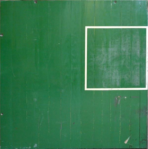 The Boston Garden's venerable parquet floor dates back to 1946 when Celtics president Walter Brown spent $11,000 on a surface to replace the concrete floor at Boston Arena, where the team played when the Garden was unavailable. Due to the post-World War II lumber shortages, the East Boston Lumber Company had to construct the floor in the parquet style, in which small pieces of wood are fused together. Thus, out of necessity sprang an historical landmark. The original parquet floor, moved to the Garden in December 1952, became embedded to the club's legend. Bob Cousy was called the "Prince of the Parquet" for using his knowledge of the parquet's dead spots and warped boards to his advantage, allowing him to steal dribbles and passes from his opponents. The floor, consisting of 264 panels held together by wood planks and brass screws with 988 bolts, was refurbished several times, the last in August 1997, and though it withstood quick-paced, rubber-soled sneakers, constant dribbling, and the frequent assembling and disassembling for home games, it was always was the very definition of the term "home-court advantage." In September 1995, the parquet was moved next door from the old Boston Garden to the FleetCenter. The last game on the parquet was played on December 22, 1999, whereupon it was replaced by a replica court integrating portions of the original floor with a new parquet. This 5-by-5-foot segment of the "green section" of the floor is perhaps the largest available remnant of the floor that is so metaphoric of Celtics' 11 titles in 13 seasons, and site of so many of their game-breaking moments. Against the solid green is a 25" x 25" white box inside of which is where most of scuffing and sneaker marks are. There's also an area beside the box where the paint has been scraped in spots. As Celtic opponents always found out, it would be impossible to stand on this sacred wood without one's knees buckling. LOA from the Celtics.