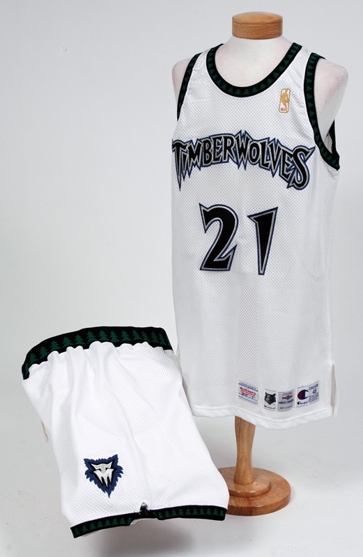 Lot # 1700: 1996-97 Kevin Garnett Full Road Uniform