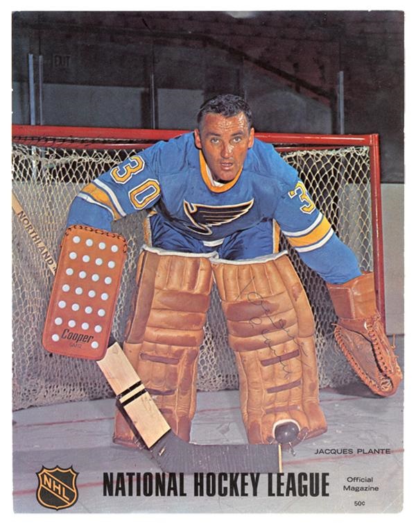 When Jacques Plante put on a face mask in 1959 after taking a slap shot in the face, he literally changed the face of hockey. A brilliant goalie, he led the Canadiens to 5 straight Stanley Cups and enjoyed a storied 20-year HOF career. Each of these 12 photos from NHL's official magazine boasts Plante's important signature -- including a few with him sans mask with the Canadians and later the St. Louis Blues, which with the signatures are extremely rare. Signatures in blue ink are NRMT as are the pages, which also include photos signed by Bobby Orr, Tony Esposito, Johnny Bower, Gump Worsley, Reg Fleming and others. Pages are also NRMT.
