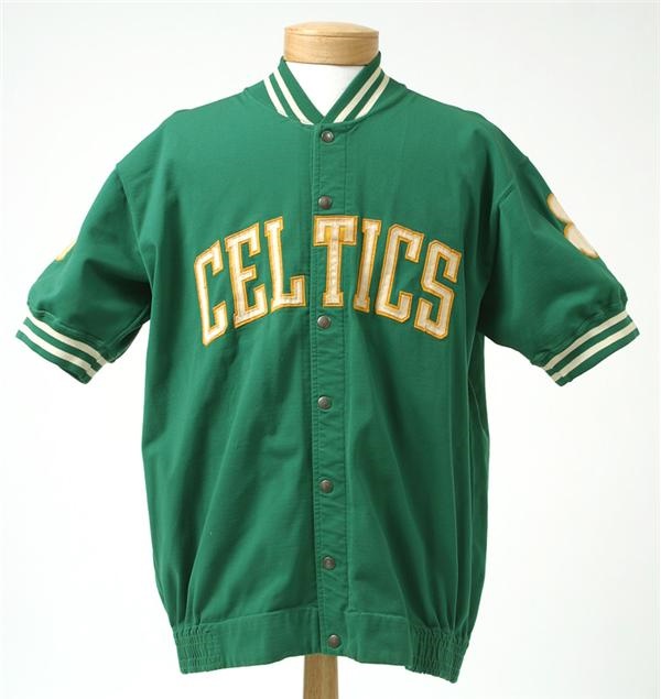 Cornbread Maxwell is one of 22 Boston Celtics whose number, 31, is retired. Now his game-worn warmup from the glory years can be a player in your collection. It is classic Celtics, a green doubleknit with the white shamrock embroidered on the sleeve and CELTICS commanding the front. Elastic collar, arm holes and waist. His silk nameplate is velcro-fastened onto the back, and he signed his name "Cedric #31 Maxwell" in black marker underneath. Maxwell spent eight seasons with Boston, averaging 13.7 points and winning world championships in 1981 and '84. The lettering is slightly discolored and the green on the buttons has worn off. But the garment is in overall fantastic shape.