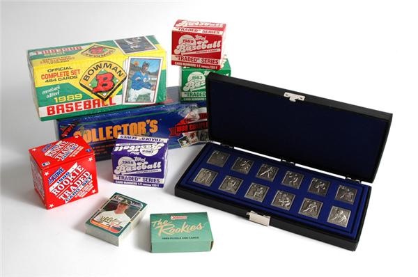 Huge collection of 84 baseball/football complete sets. Highlight of the collection is a 1973 Topps baseball set. The '73 set grades EX-MT to NRMT. Other Topps baseball sets include '77 (EX to EX-MT), 80-86, 87 (2), 88 (2), 89. Also included are Topps Gallery of Immortals Sets from '84 (2), 85 (2), 86 (2), and 87. Donruss sets include '82, 83, 85, 86, 87 (2). Fleer sets include '81-84, 88, 89. (5) 1989 Upper Deck sets are included (4 are factory). Also included are (30) baseball traded or update sets including '84 and 86 Fleer Update, (3) '86 Topps Traded, and (3) '86 Donruss the Rookies. (13) Other assorted 1980/1990s baseball sets are included. There are also (2) 1981 Topps and a 1984 Topps football set included. Sets average NRMT unless otherwise noted.