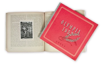 Two volumes, each a complete sets. Inside of each are tipped-in a total of about 100 cards (complete) relating to the Games. Volumes are each about 100-pages and measure 9.5x9". Volume I is the history of the Games with Paavo Nurmi, the 1908 Marathon and more. Volume II is booth Summer & Winter 1952. Books are EX, cards are NRMT.