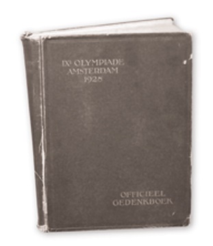 1000+ page hardcover in blue cloth covers. Sturdy gilt cover boasts the words, "IX Olympiade Amsterdam 1928…Officieel Gedenkboek." Measures 12x9x2.5" and is the definitive work on these important Games. In Dutch, this is the official volume of the Amsterdam Olympic Organizing Committee (the one that counts). VG-EX.