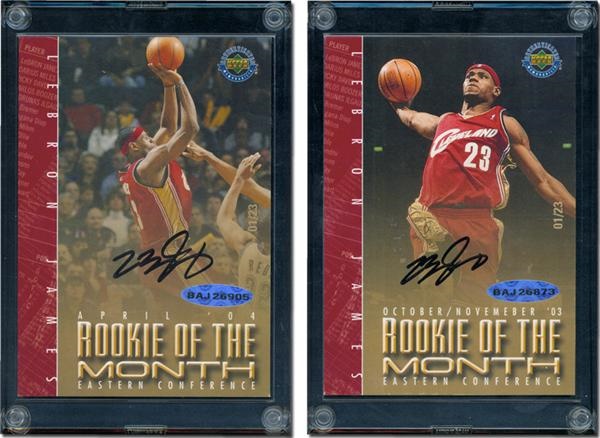 Lebron has only begun to scratch the surface of his unlimited potential and with age will only come more success. That's what makes this pair of signed 3"x5" cards from Upper Deck so tempting. Autographed during his rookie season these early ink specimens are amongst the finest of their kind. Both are written "23 Lebron James" in black sharpie that grades a perfect 10/10 on cards that are NRMT. Proper documentation and hologram from UD also included.