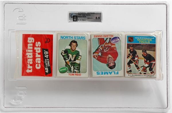 Lot # 90: 1975/76 Topps Hockey Rack Pack GAI 8.5