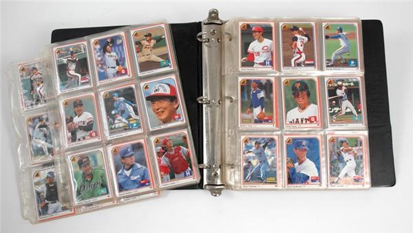 Immaculately preserved set of 1991 Baseball Magazine Japanese baseball cards includes rookie cards of Yoshii, Nomo and Hasagawa -- and assorted U.S. players like Ozzie Canseco, Ray Young, Johnny Ray, Guy Hoffman, Jim Traber, etc. Great panorama of Japanese league faces and uniforms with most cards NRMT.