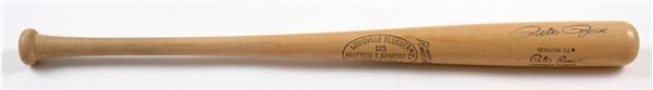 Rose's blue sharpie signature (8/10) displays brilliantly against the light ash on the barrel of this Louisville Slugger "PR S2". Intended solely as a display piece, the bat has never been used and exists in NR-MT+ condition owning deep, dark stampings and a blemish free surface.