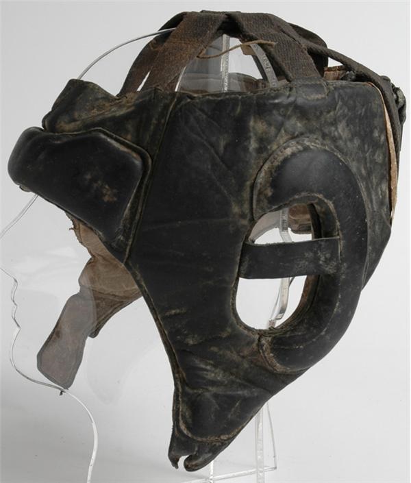 The top middleweight contender during the 1960’s, Rubin Carter was convicted of murder and sentenced to life in prison before he ever got the chance at a title. It wasn’t until 1985 that Carter was freed from jail after a judge ruled that he did not receive a fair trial. The story of “Hurricane” Carter is a controversial one, and his legacy is still debated in boxing circles to this day. This black leather head protector traveled with him daily to the Market Street Gym. Shows tremendous use and due to being stored, would benefit from a light cleaning. The offered head protector comes directly from Carter’s son.