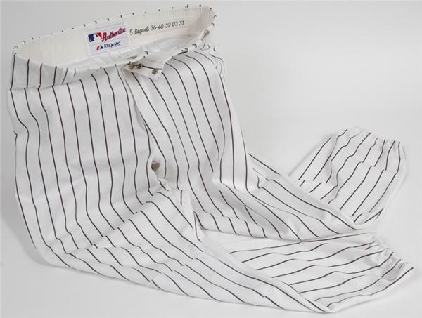 The future HOFer wore these pinstriped Astros "baggies" during the 2003 season when he had 39 homers and 100 RBIs. Majestic/Authentic tagging in waistband with a panel stitched "5 Bagwell 36-40 32 03 S1" in black. Light but evident use with a few specks here and there.