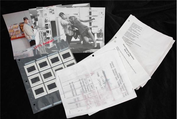 These items are from the intersection -- literally -- of art and real life. One is the May 8, 1996 deposition of O.J.'s son Jason for his father's murder trial. 275 pages of the fascinating and the mundane as the kid is grilled about his father's violent tendencies. The other is a set of 4 photos and 8 slides from the 1994 Charlie Sheen caper flick "The Chase" -- involving the very sort of highway pursuit that would occur with O.J.'s Bronco. Slides are one of a kind. All items from the Charlie Sheen Collection.
