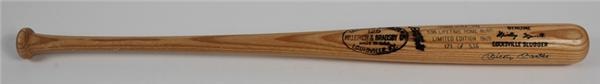 Eye candy for Mantle Maniacs -- a limited edition 1985 commemorative Mantle model Louisville Slugger signed by the Mick himself with an EX signature in blue marker that is kept from perfection only by some ink loss on the second "M". The blonde beauty itself is NRMT with some incidental scratching of the handle and barrel. Barrel is inscribed: "Commemorating 536 Lifetime Home Runs Limited Edition 1985 171 of 536." Bat is 34.5" and would be a glorious addition to any Mantle display.